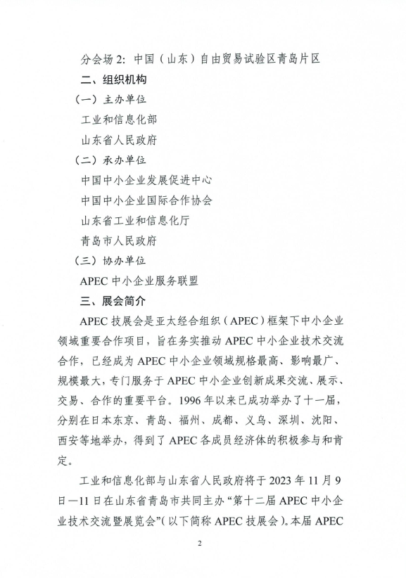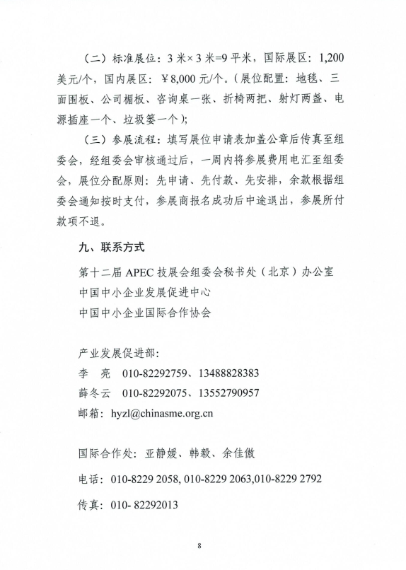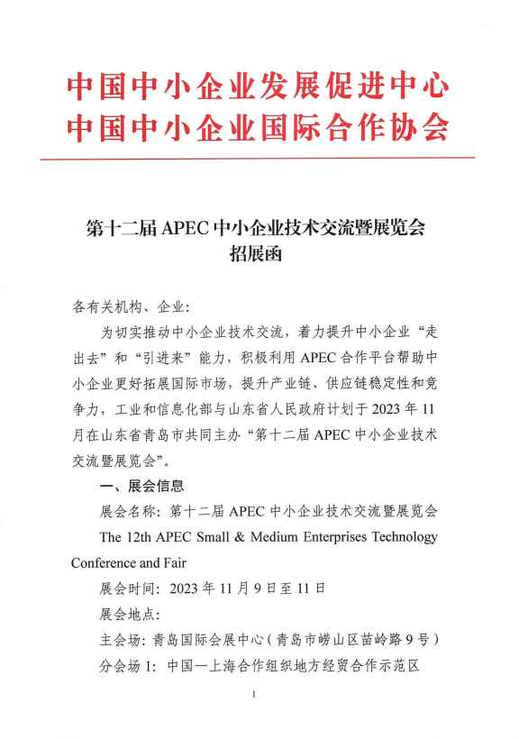 第十二屆 APEC 中小企業(yè)技術交流暨展覽會招展函