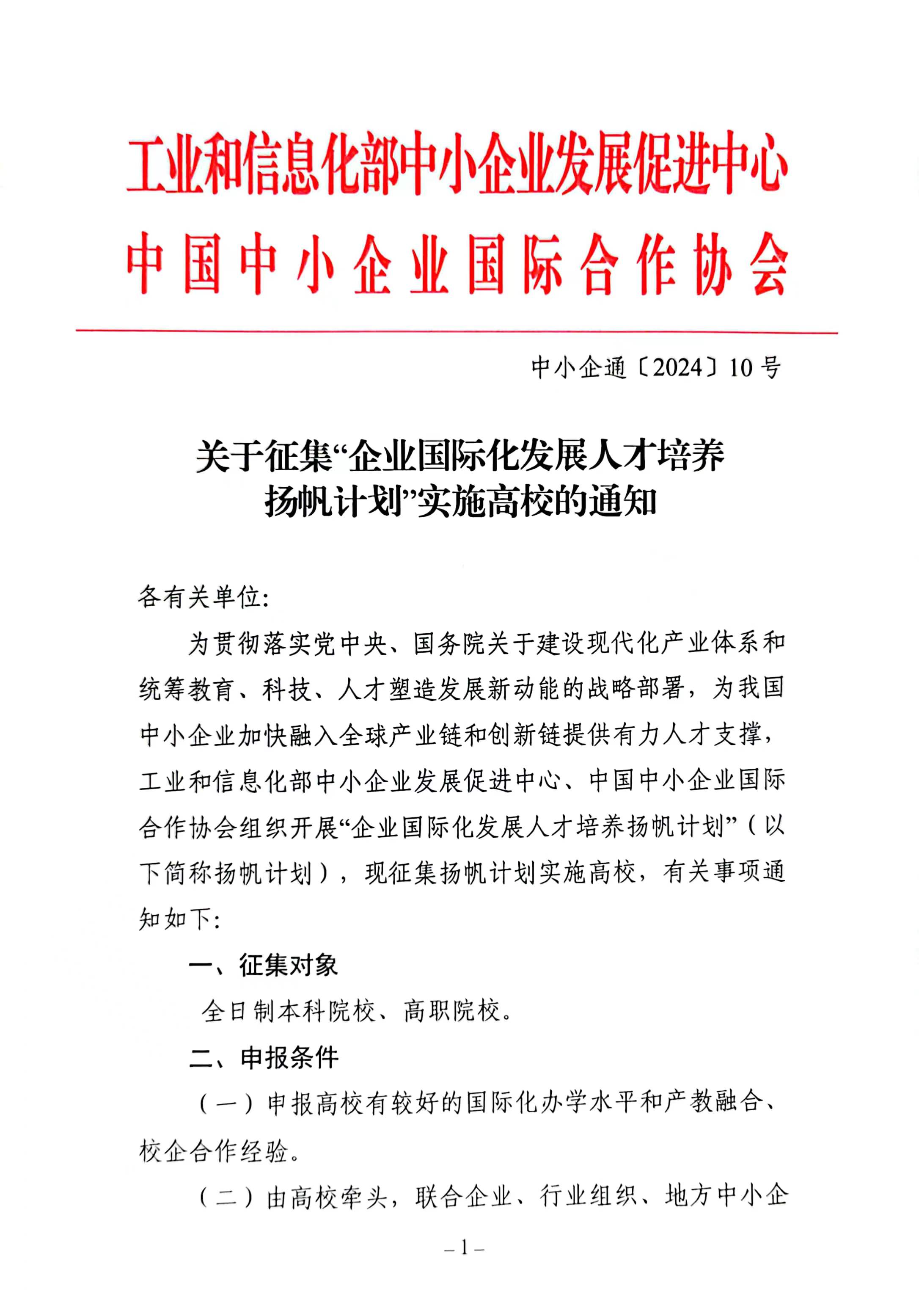 關(guān)于征集“企業(yè)國(guó)際化發(fā)展人才培養(yǎng)揚(yáng)帆計(jì)劃”實(shí)施高校的通知