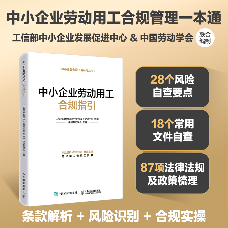 為積極推進中小企業(yè)合規(guī)管理體系建設(shè),在工業(yè)和信息化部中小企業(yè)局指導(dǎo)下,工業(yè)和信息化部中小企業(yè)發(fā)展促進中心聯(lián)合中國勞動學(xué)會,凝聚服務(wù)中小企業(yè)合規(guī)發(fā)展的科研機構(gòu)、行業(yè)協(xié)會、高等院校、事業(yè)單位及專業(yè)機構(gòu)等多方力量,組織編寫并由人民郵電出版社出版發(fā)行了《中小企業(yè)勞動用工合規(guī)指引》。該書聚焦中小企業(yè)勞動用工核心環(huán)節(jié),為中小企業(yè)提供“條款解析+風(fēng)險識別+合規(guī)實操”的合規(guī)落地方案,既可以作為中小企業(yè)管理者、人力資源從業(yè)者、法務(wù)人員的實用工具書,也可以為相關(guān)研究提供重要參考,更好地推動形成勞動關(guān)系和諧的中小企業(yè)發(fā)展新格局。