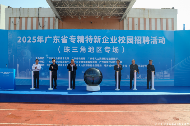 11月14日,“就在南粵”廣東省2026屆普通高校畢業(yè)生系列供需對(duì)接活動(dòng)——“專精特新”企業(yè)校園招聘活動(dòng)(珠三角地區(qū)專場(chǎng))在廣東科學(xué)技術(shù)職業(yè)學(xué)院珠海校區(qū)成功舉辦。本次活動(dòng)由廣東省工業(yè)和信息化廳、廣東省教育廳、廣東省人力資源和社會(huì)保障廳聯(lián)合主辦,廣東省中小企業(yè)服務(wù)中心、廣東省就業(yè)服務(wù)管理局和廣東科學(xué)技術(shù)職業(yè)學(xué)院共同承辦,珠海市工業(yè)和信息化局、珠海市人力資源和社會(huì)保障局等單位協(xié)辦。廣東省工業(yè)和信息化廳二級(jí)巡視員程有根,廣東科學(xué)技術(shù)職業(yè)學(xué)院黨委副書(shū)記江樂(lè)忠,廣東省人力資源和社會(huì)保障廳就業(yè)服務(wù)管理局副局長(zhǎng)鄭暉、廣東省中小企業(yè)服務(wù)中心主任全在勤,珠海市工業(yè)和信息化局副局長(zhǎng)施洋等同志出席了活動(dòng)。